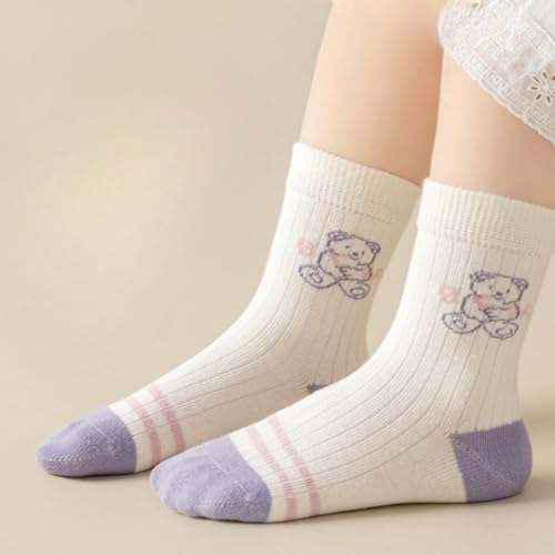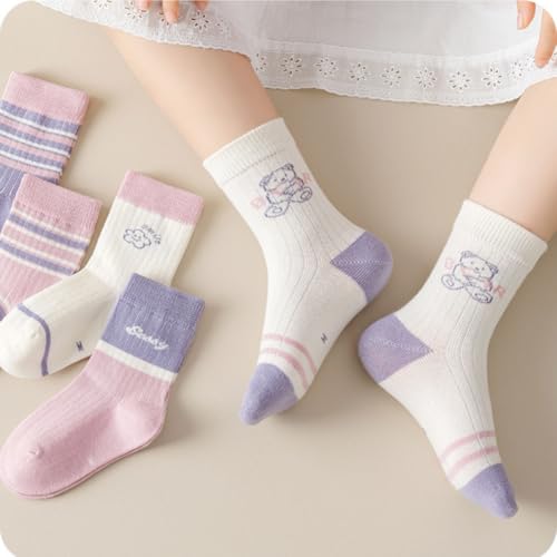 5 Pairs Toddler Girl Kids Socks, Cute Bear Pink Soft Cotton Crew Socks, 1~12Years 7