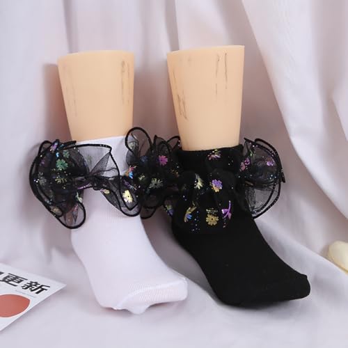 More information about 2 Pairs Glitter Flower Ruffle Double Layer Lace Princess Socks Casual Comfy Frilly Dress Ankle Socks Cute Soft Crew Socks