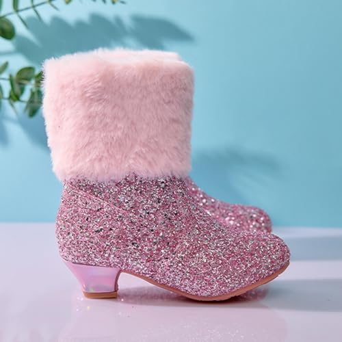 Girls Glitter Boots Princess Dress Up Shoes Faux Fur Lined Mid Calf Winter Warm Sparkly Fashion Party Ankle Booties 6