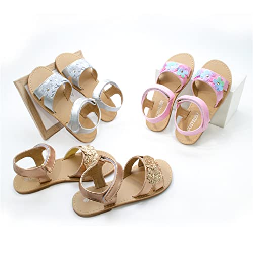 Children Flat Toe Sandals Flower Beach Shoes Little Girls Sandals Sandals for Outer Wear Girl Jelly Sandals (Rose Gold, 7-8 Years Little Child) 5