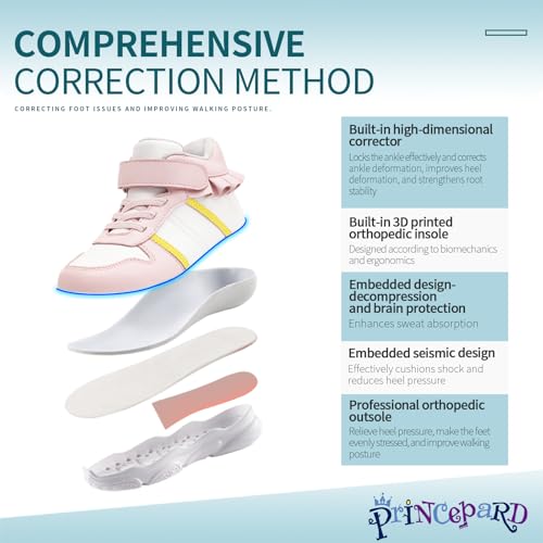 Toddlers Girls Orthopedic Shoes with Ankle and Arch Support,Fashion Thick Sole Sneakers with Skirt Decoration 1