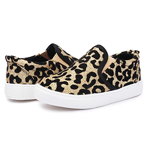Skeblo Boy's Girl's Leopard Print Canvas Sneakers Casual Slip On Loafers Kids Flat Shoes 6