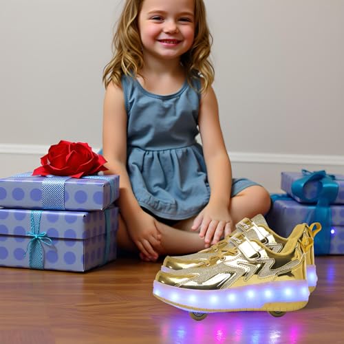 HOT ! Girls Roller Shoes LED Lights Up Sneakers with Wheels Removable Lightweight Roller Skates Boys Beginners Trainers Skate Comfortable Sports Footwear Athletic USB Charge Sneaker Kids Gifts