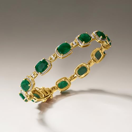 HOT ! Ross-Simons 13.00 ct. t.w. Emerald and .21 ct. t.w. Diamond Bracelet in 18kt Gold Over Sterling