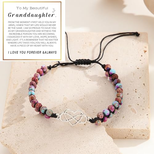 HOT ! To My Granddaughter-Infinity Forever Love Heart Bracelet, You are Always in Mine Beads Natural Emperor Jasper Stone Beaded Wrap Bracelet Adjustable Duoble Layer for Mind Peace Jewelry