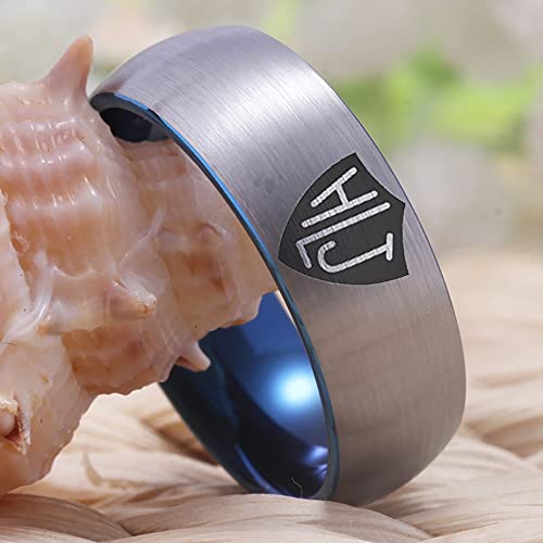 8mm Width CTR Ring Spanish HLJ Ring - Black Pipe or Silver Tone Brushed Dome and Blue Inside Free Customized Service 1