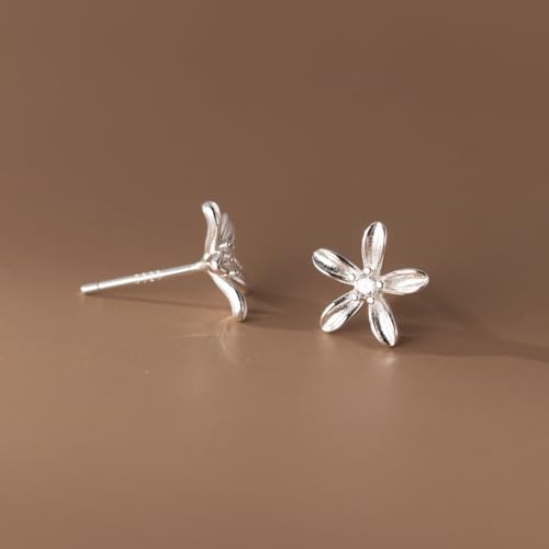 Reffeer Solid 925 Sterling Silver Small Flower Earrings Studs for Women Teens Pretty CZ Flower Stud Earrings Spring 2