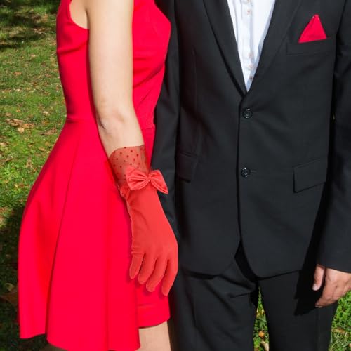 • Stylish and Elegant Design: Our red gloves women formal are decorated with delicate bows at the wrists, and these gloves combine vintage charm with modern elegance, making them a dazzling accessory for any occasion.