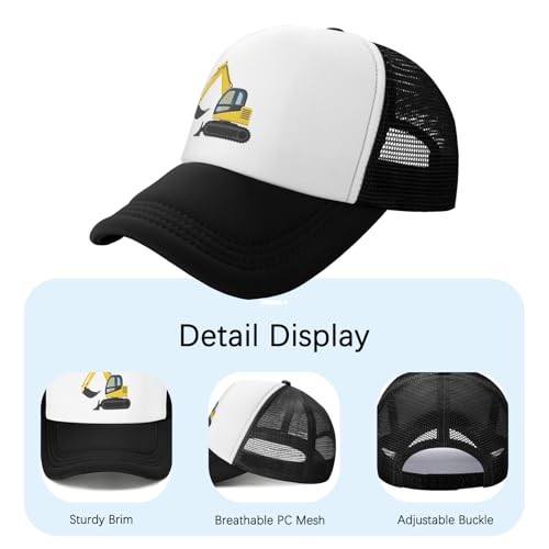 Boys' Excavator Trucker Hat for Toddler Youth, Adjustable Snapback Mesh Baseball Cap for Boys Girls Teens 4