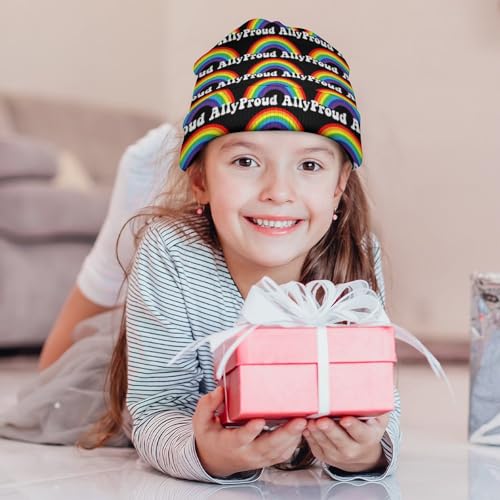 Proud Ally Pride Month LGBTQ Kids Beanie Hat for for Girls Boys Children Cap Winter Knitted Chemo Cancer Headwear Accessories Gifts Decoration Black 6