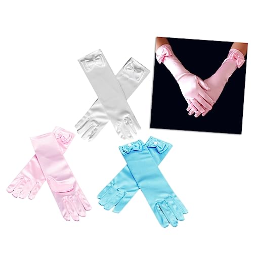 1set Satin Gloves for Boy Girl White Light Dress up Accessories for Weddings Parties and Dance Sleeve Bowknot Design 3