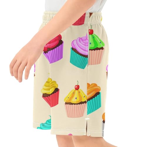 J JOYSAY Cartoon Cupcake Assortment Beige Boys Athletic Shorts Kids Youth Casual Shotrs with Pockets Elastic Waistband 6