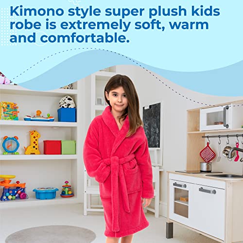 • Versatile Use - Our girls' fleece bath robe is a perfect to wrap your kids in on any occasion. Made with a soft material, this bathrobe is perfect for when the kids step out of the shower, pool, sauna, or beach to keep them warm. The super soft fleece material will make kids feel cozy and warm.