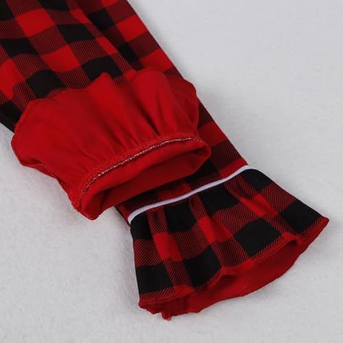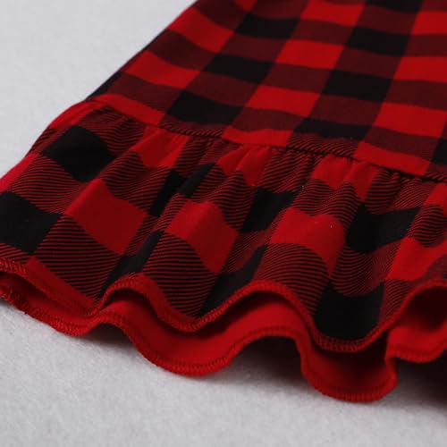 • Classical Black and Red Plaid Dress with Ruffled Hem, Front Neck Button, Easy for Dressing.