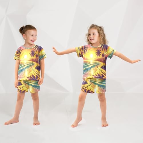 Tropical Beach Summer Yellow Pajama Set Short Sleeve Summer Pajamas Sleepwear Nightwear Set Cotton 5Y 6