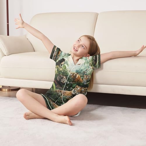 ALAZA Animal Bird Tiger Leopard Satin Pajamas Set Short Sleeve Button Down Sleepwear Summer Pjs 2 Piece 6