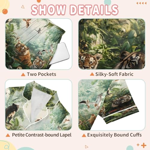 More information about ALAZA Animal Bird Tiger Leopard Satin Pajamas Set Short Sleeve Button Down Sleepwear Summer Pjs 2 Piece