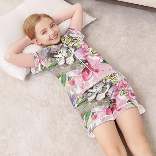 senya Retro Butterflies Kitten Cat Satin Summer Pajama Sets Silk Short Sleeve Button Down Sleepwear 5