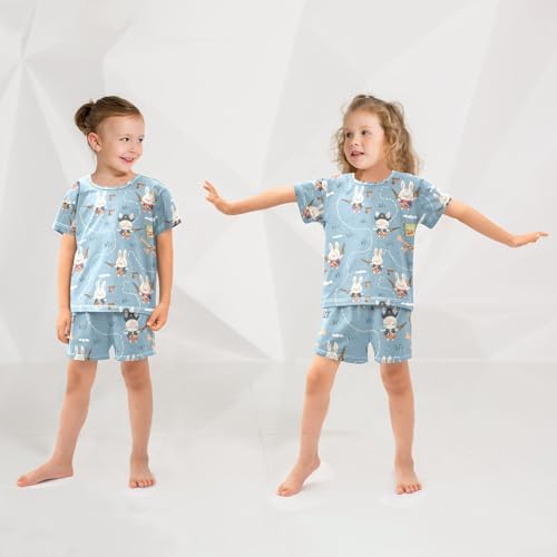 ALAZA Rabbit Bunny Pirate Pajamas Set Short Sleeve Cotton Sleepwear Summer Pjs 2 Piece 5-14Y 6