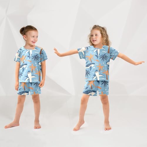 ALAZA Shark Coconut Tree Blue Pajamas Short Sleeve 2 Piece Sleepwear Top and Bottom Pajama Set Unisex 2