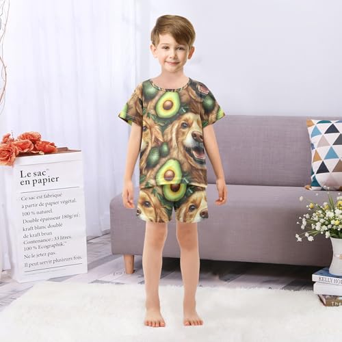 ALAZA Puppy Dog Avocado Pajamas Set Short Sleeve Cotton Sleepwear Summer Pjs 2 Piece 5-14Y 1