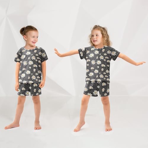 ALAZA Vintage Daisy Flowers Stars Pajama Set Short Sleeve Sleepwear Soft Lounge Nightwear 1