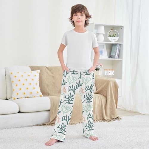 Pajama Pants Lounge Sleep PJ Bottoms Sleepwear Elastic Waist Drawstring M Green Coral White 4