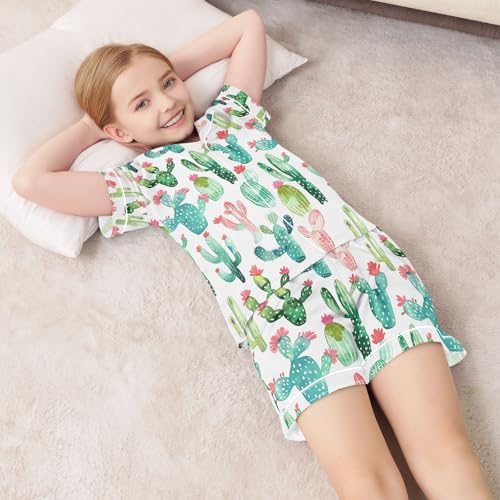 ALAZA Green Cactus Blossom Leaf Pajamas Satin Pajama Set Short Sleeve Button Down Sleepwear 6