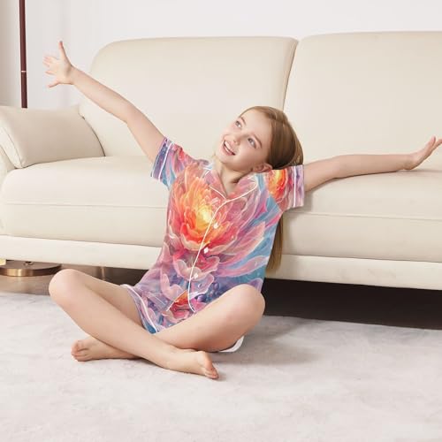 senya Pajama Sets Silky Button Down Nightwear Sleepwear Size 5-14 Years Fire Flower 5
