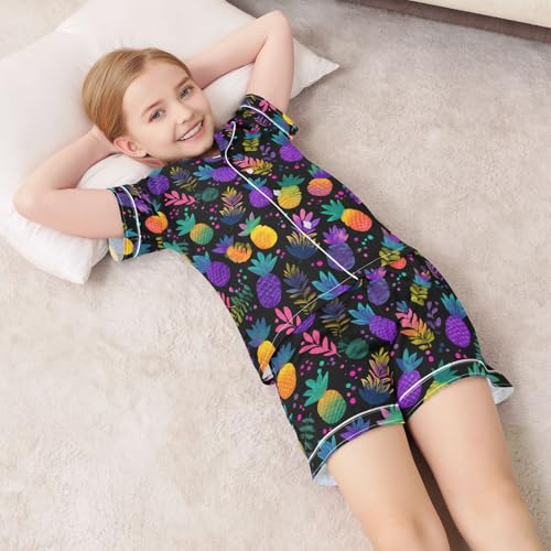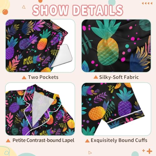 ALAZA Colorful Pineapple Leaf Dot Satin Pajamas Set Short Sleeve Button Down Sleepwear Summer Pjs 2 Piece 1