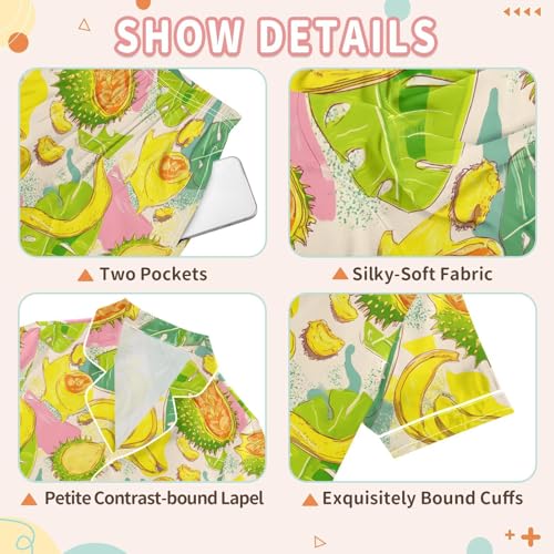 Watercolor Banana Pattern Pajamas Sets Short Sleeve Silk Stain Pjs Button Down Sleepwear for 5-14Y 4