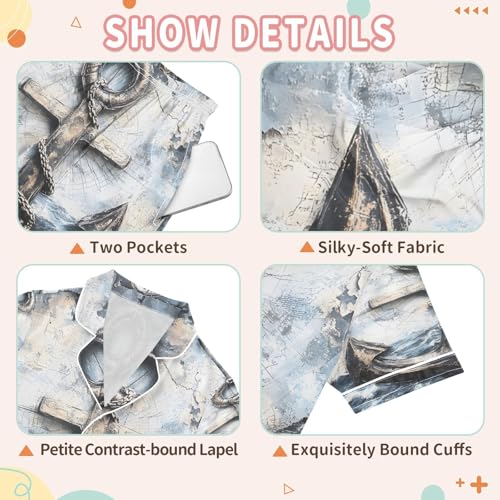 ALAZA Anchor Retro Vintage Satin Pajamas Set Short Sleeve Button Down Sleepwear Summer Pjs 2 Piece 4