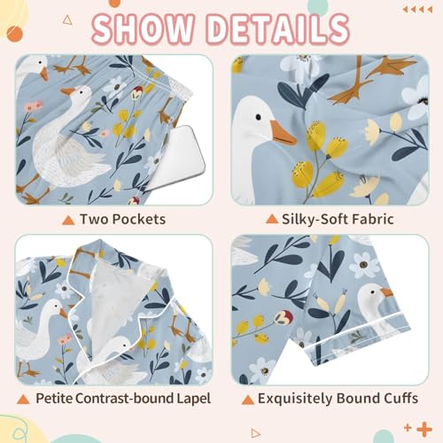 ALAZA Duck Leaf Blossom Flower Satin Pajamas Set Short Sleeve Button Down Sleepwear Summer Pjs 2 Piece 6