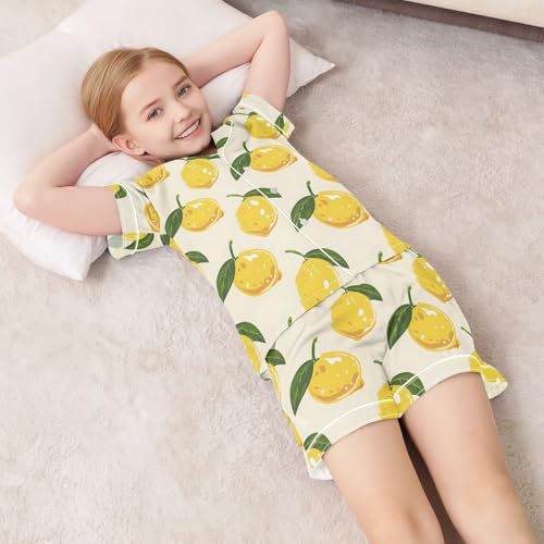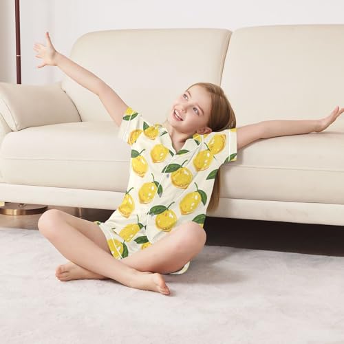 More information about ALAZA Yellow Lemon Leaf Satin Pajamas Set Short Sleeve Button Down Sleepwear Summer Pjs 2 Piece