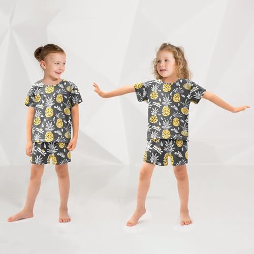 ALAZA Pineapple Leaf Black Pajamas Short Sleeve 2 Piece Sleepwear Top and Bottom Pajama Set Unisex 2