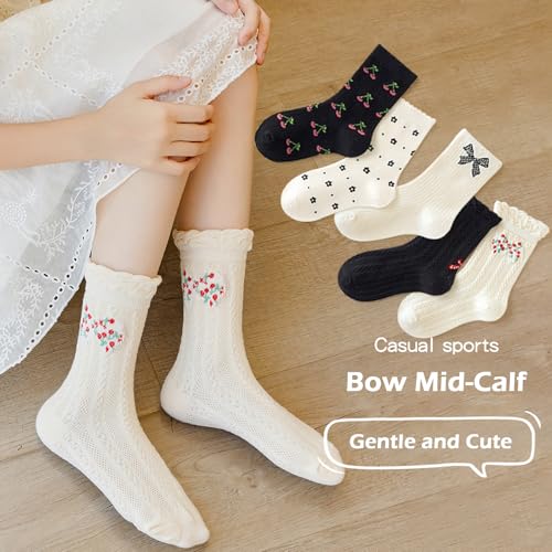 Girls Socks Mid-Calf Pattern Ribbed Cuffs Crew Socks Cute Casual Novelty Socks for Girls 5 Pairs 4