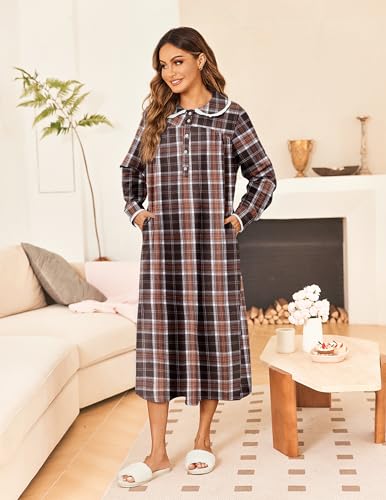 • 【Plaid & Pockets Design】:Flannel cotton nightgowns for women features long sleeves, a variety of colors plaid, 2 pockets and botton design.