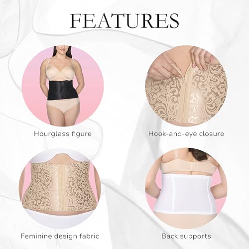 • HOURGLASS FIGURE: The hook-and-eye front closure paired with full-length, flexible boning offers superior waist slimming control and promotes good posture.