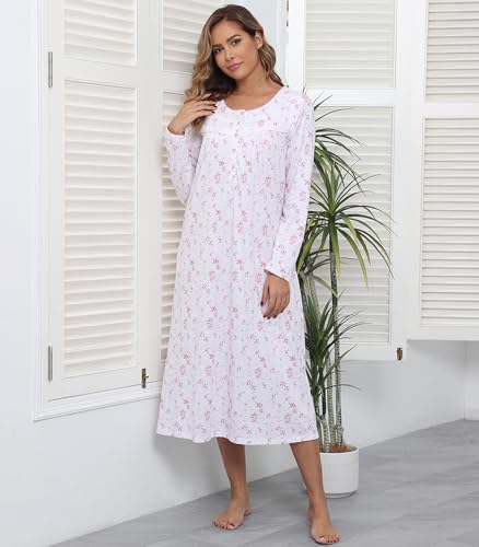 • Feature: Long sleeve cotton nightgowns feature a chic scoop neck with delicate lace trim and easy-to-use shell buttons. Full length provides modest coverage and it is not see through, not clingy