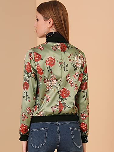 Allegra K Women's Bomber Jacket Satin Long Sleeve Zipper Floral Print Casual Fall Coat with Pocket Winter Outwear 1