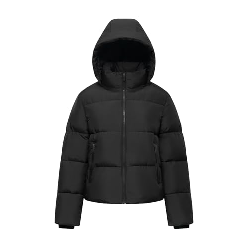 PUFFIT Women's Cropped Puffer Jackets,Warm Winter Jacket with Removable Hood,Zipped Pockets,Short Ladies Quilted Coat 1