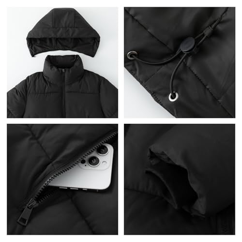PUFFIT Women's Cropped Puffer Jackets,Warm Winter Jacket with Removable Hood,Zipped Pockets,Short Ladies Quilted Coat 4