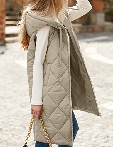MEROKEETY Womens Sleeveless Quilted Long Puffer Vest Hooded Full Zip Jacket Coats with Pockets 4