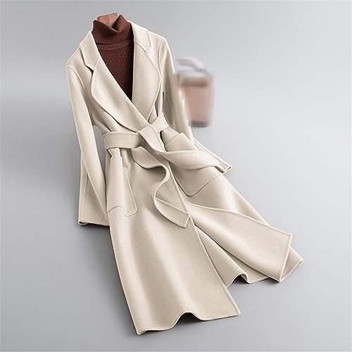 Women Autumn Classic Double-Faced Cashmere Woole Outerwear Belt Winter Wool Coat 4