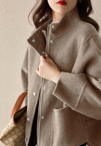 chouyatou Women's Casual Stand Collar Single Breasted Short Wool Pea Coat Overcoat with Pockets 1