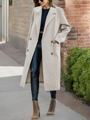 Saodimallsu Womens Trench Coat Winter Lapel Double Breasted Long Pea Coat Casual Work Office Overcoat with Pocket 6
