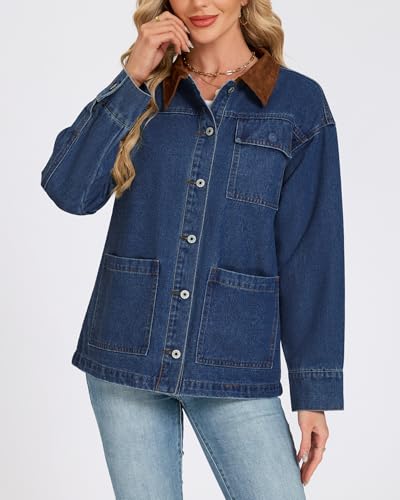 More information about Kedera Womens Oversized Denim Jacket 2025 Trendy Button Up Long Sleeve Jean Jacket with Faux Suede Collar Fall Barn Coat