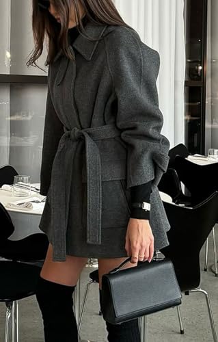 CHARTOU Women Winter Wool Pea Coat Casual Loose Short Wool Trench Coat with Belt 1