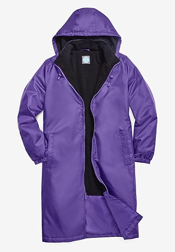 • Rain is no match for this Mid-Length Raincoat. It's water-resistant and keeps you warm thanks to a cozy fleece-lined body and hood.