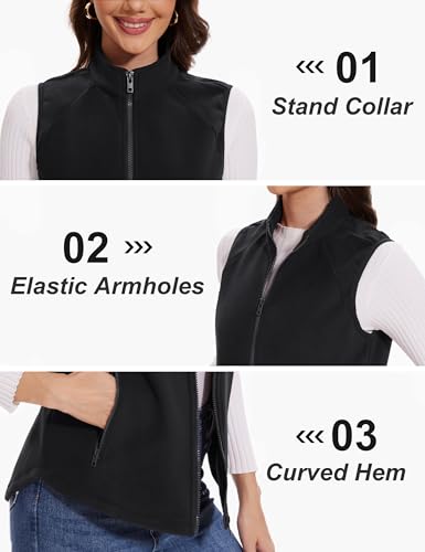 MAGCOMSEN Women's Fleece Vest with Zipper Pockets Zip Up Sleeveless Jackets Lightweight Soft Warm Polar Vest Outerwear 3